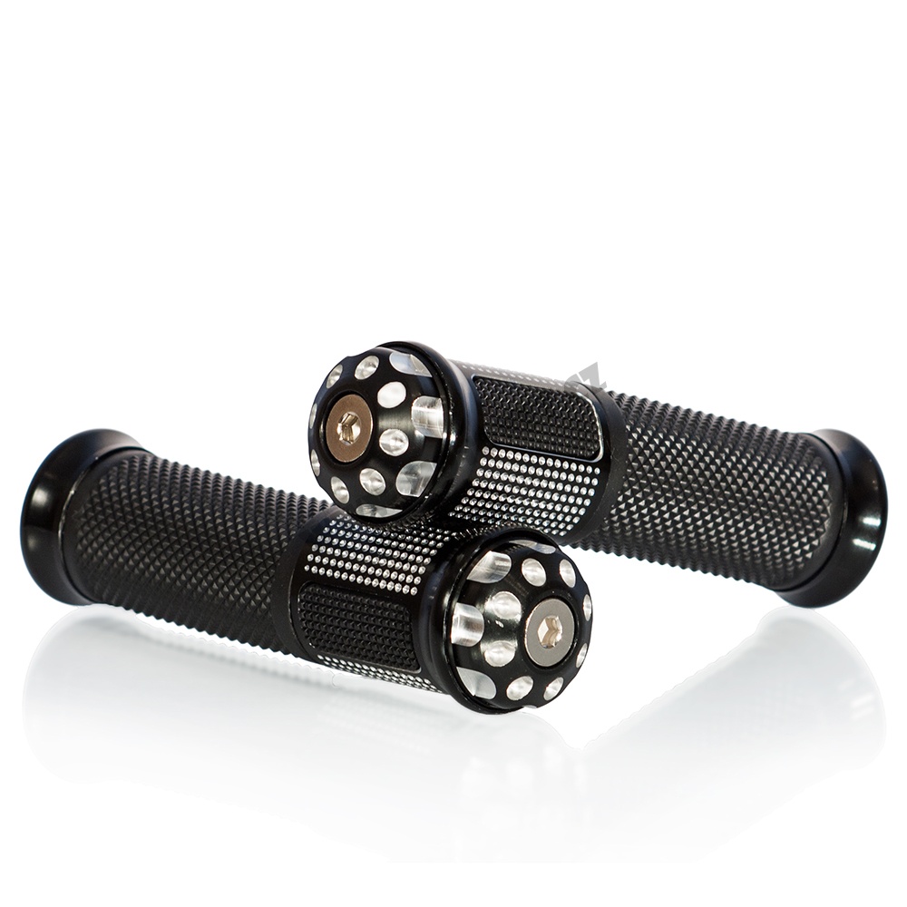 Gripy-rukojeti na moto Motion Stuff s kovovými částmi se závažíčky černé, pár