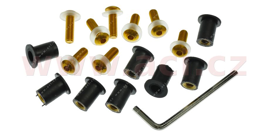 - Inbusy s vložkami M5 pro uchycení plexi Oxford, zlatý elox
