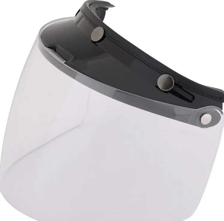 Retro sklopné ČIRÉ plexi s kšiltem pro otevřené helmy na motorku, 3 patenty