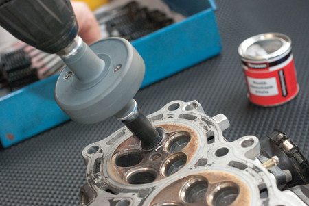 - sada pro profesionální zabroušení sedel výfukových a sacích ventilů pomocí vrtačky