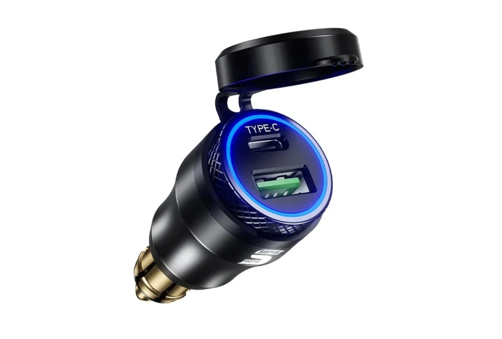 USB redukce (2x) do malé BMW, Triumph (DIN) moto zásuvky 12V, hliníková QC 3.0 USB-A USB-C