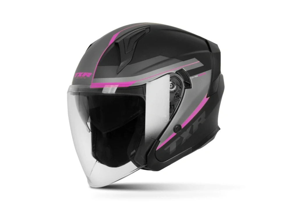 Otevřená dámská helma na motorku/skútr TXR City černo-šedo-růžová matná, se sluneční clonou