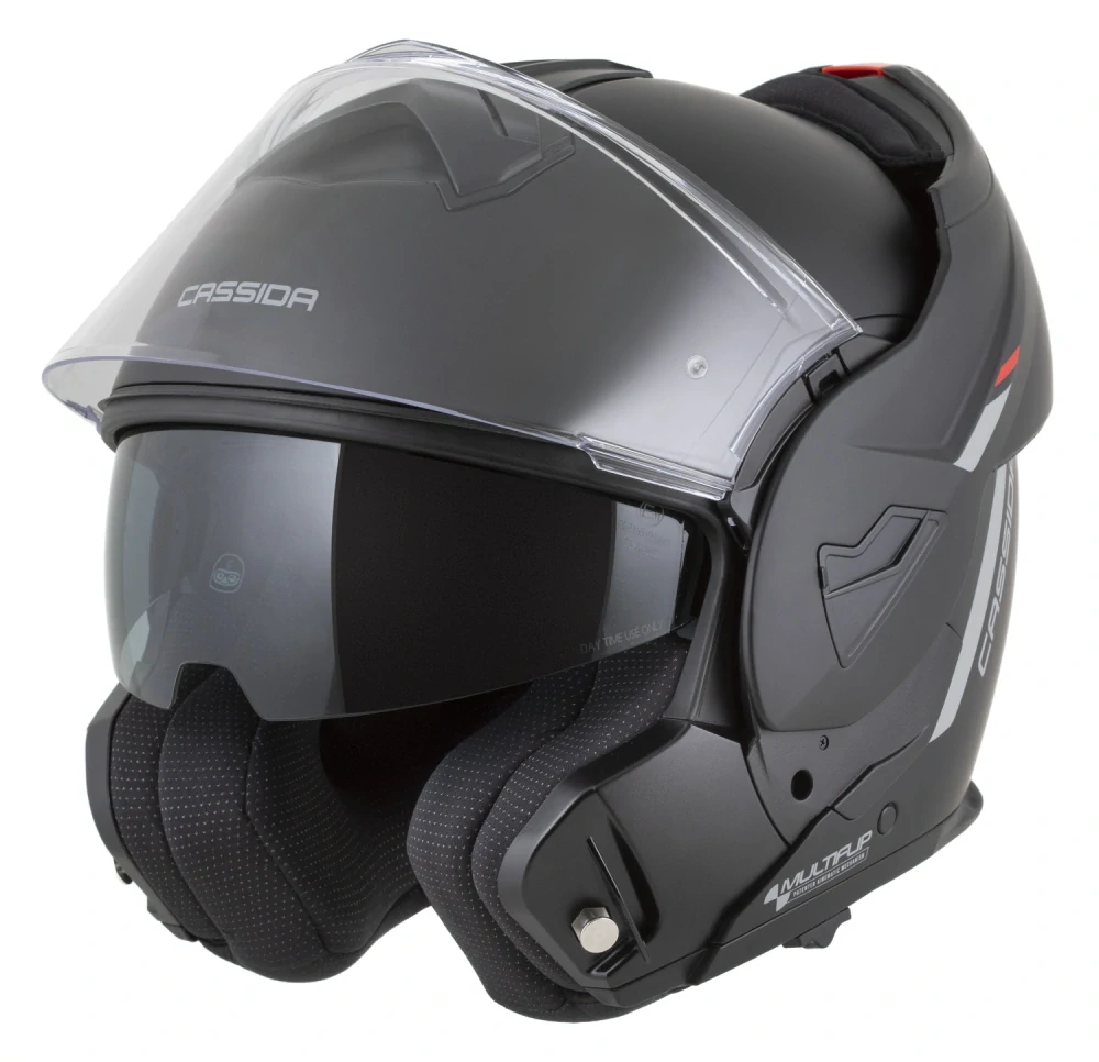 Překlopná helma na motorku CASSIDA MultiFlip Solid (černá matná/červená/šedá) + pinlock v ceně